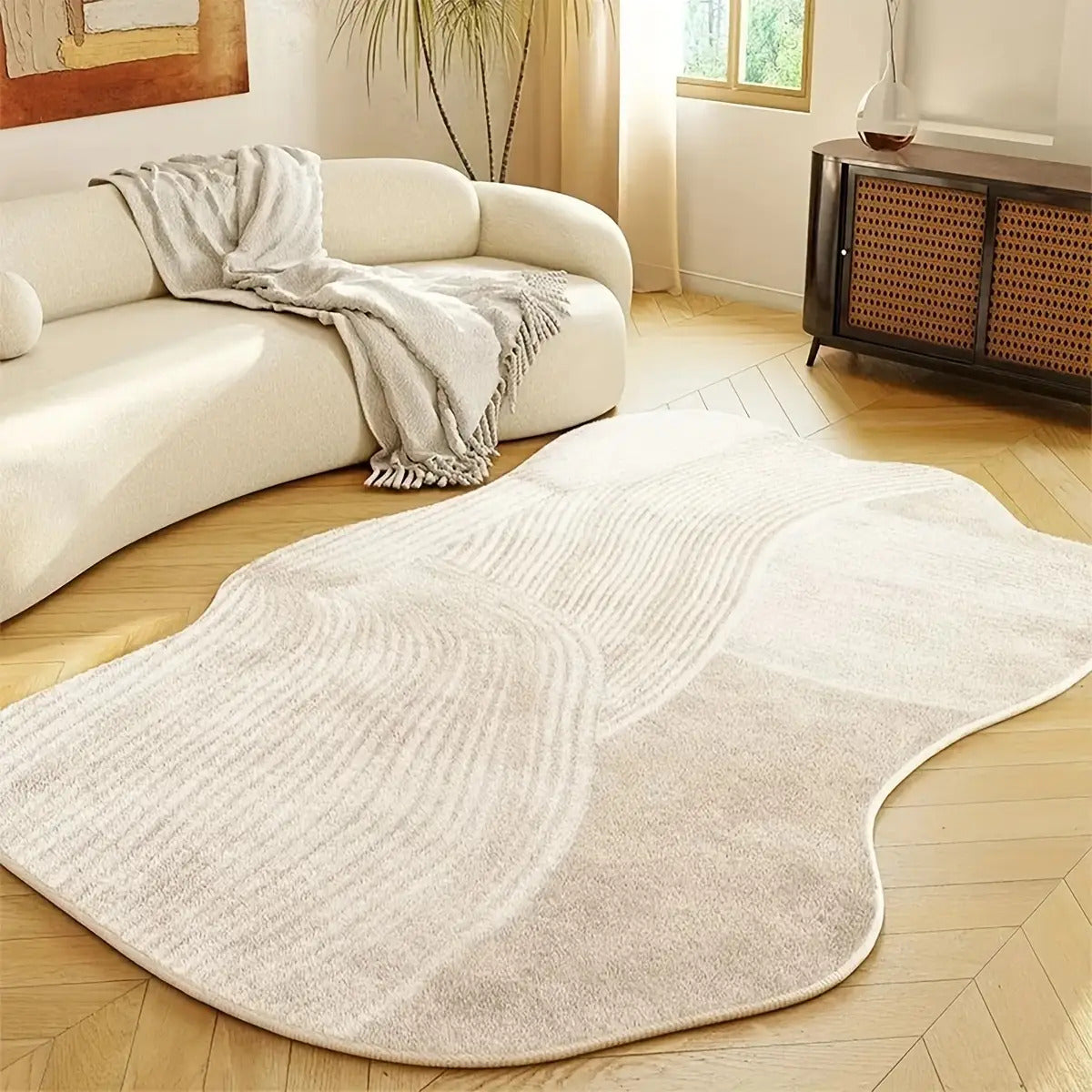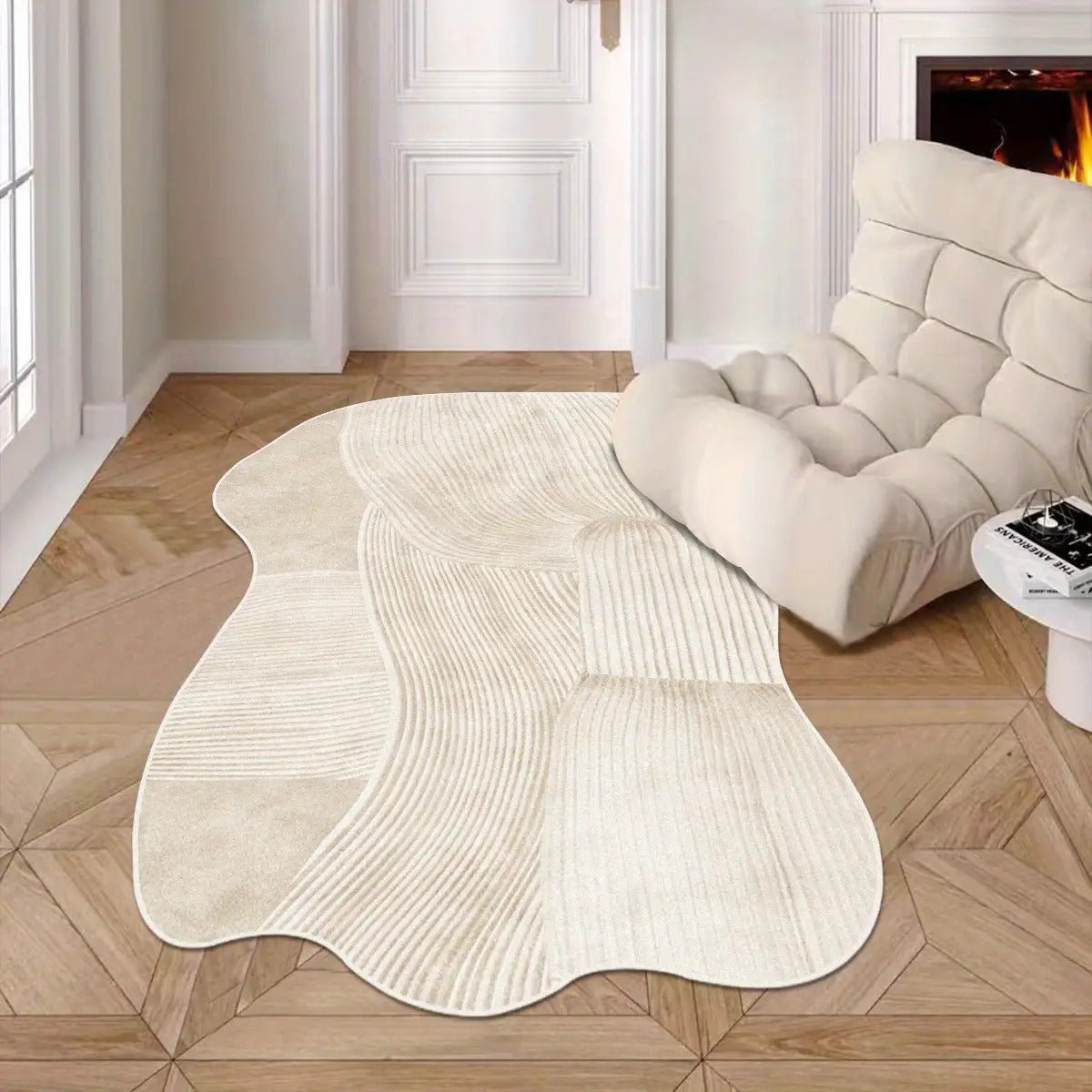 Skapa en varm, modern och harmonisk känsla i ditt hem med denna mjuka matta i oregelbunden form. Den ljusa, skulpturala designen med mjuka linjer och upphöjda texturfält ger ett elegant och trendigt uttryck som passar perfekt i allt från sovrum och vardagsrum till läshörnor och mindre sociala ytor.