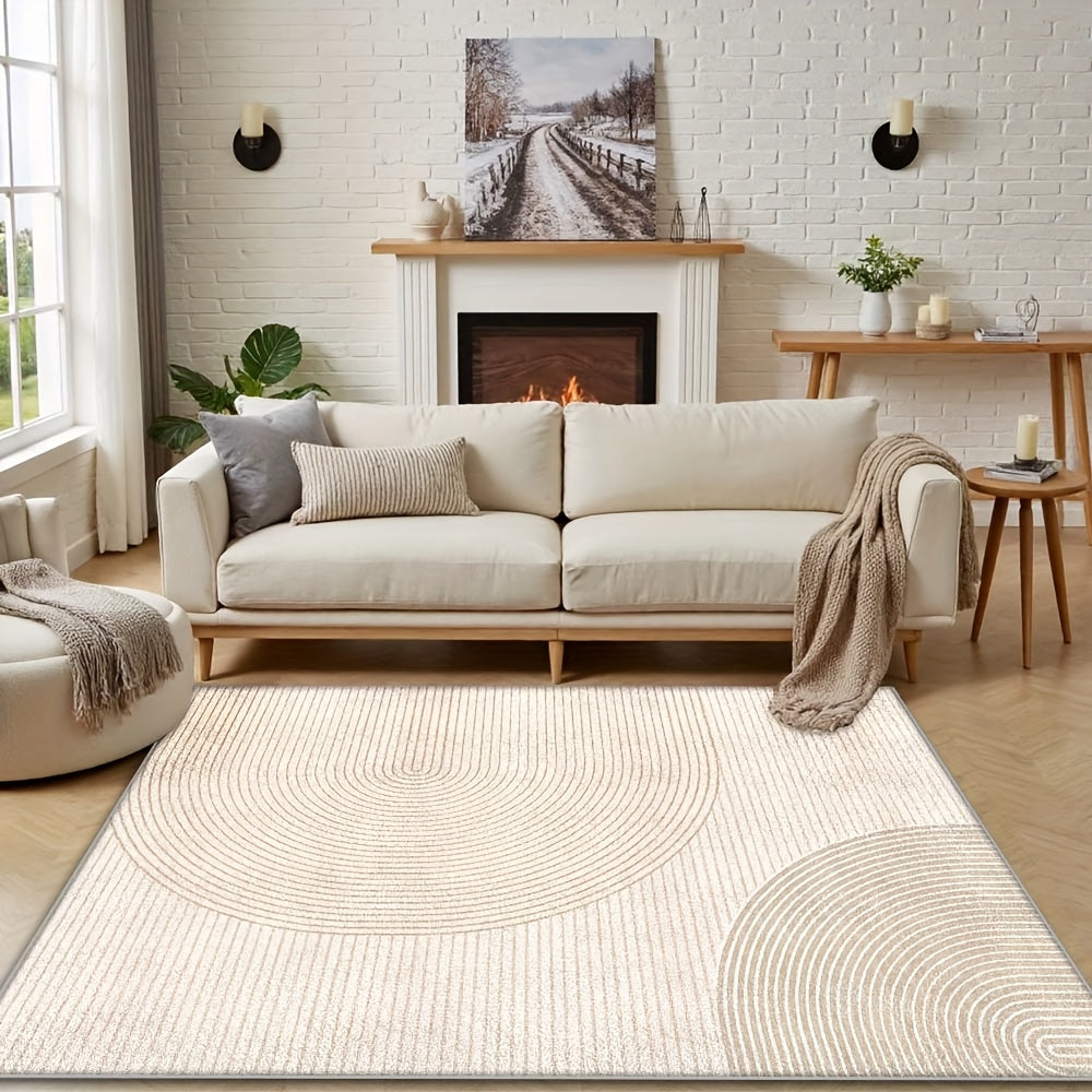 Ge ditt hem en modern och stilren känsla med denna mjuka och lättskötta matta. Kombinationen av randigt och rutigt mönster skapar ett stilfullt och harmoniskt uttryck som passar perfekt i sovrum, vardagsrum eller hemmets mindre ytor.
